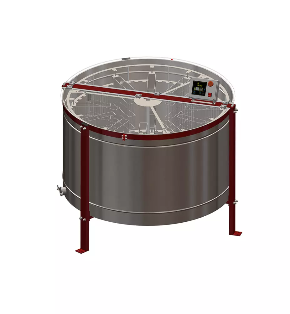 На медогонку встановлений пульт управління, який розроблений та налаштований спеціально під максимальний результат відкачування в даному типі медогонок. Завдяки пульту відкачування відбувається повністю автоматично, без будь-якого втручання людини. У пульті керування запрограмовано 9 програм для відкачування меду, 6 з яких налаштовані під радіальне відкачування, це дозволяє Вам вибрати оптимальний режим для відкачування різних видів рамок та мінімізує можливість пошкодження сотів та 3 програми для касетного відкачування (вбудована функція виконання реверсу). Для захисту під час роботи пульт управління оснащений кнопкою аварійної зупинки, бак з рамками накривається спеціальним захисним орг-склом (також служить захистом від забруднення) яке кріпиться на петлі. Даною медогонкою можна відкачувати: 60 рамок 145мм, 60 рамок 230 мм. (Рут),